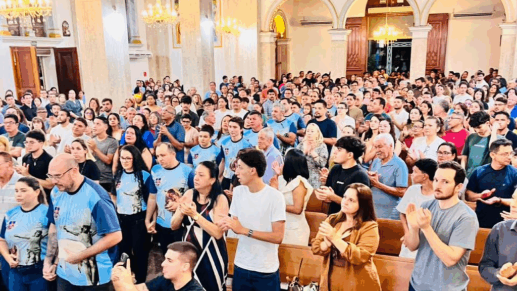 Na noite de domingo (15), às 20h, a catedral acolheu mais de mil famílias para a primeira celebração de um ciclo especial de missas dedicadas à vida familiar. A iniciativa prevê a realização de nove encontros, um a cada mês, com o objetivo de fortalecer a espiritualidade das famílias e incentivá-las a caminhar rumo à santidade no cotidiano.