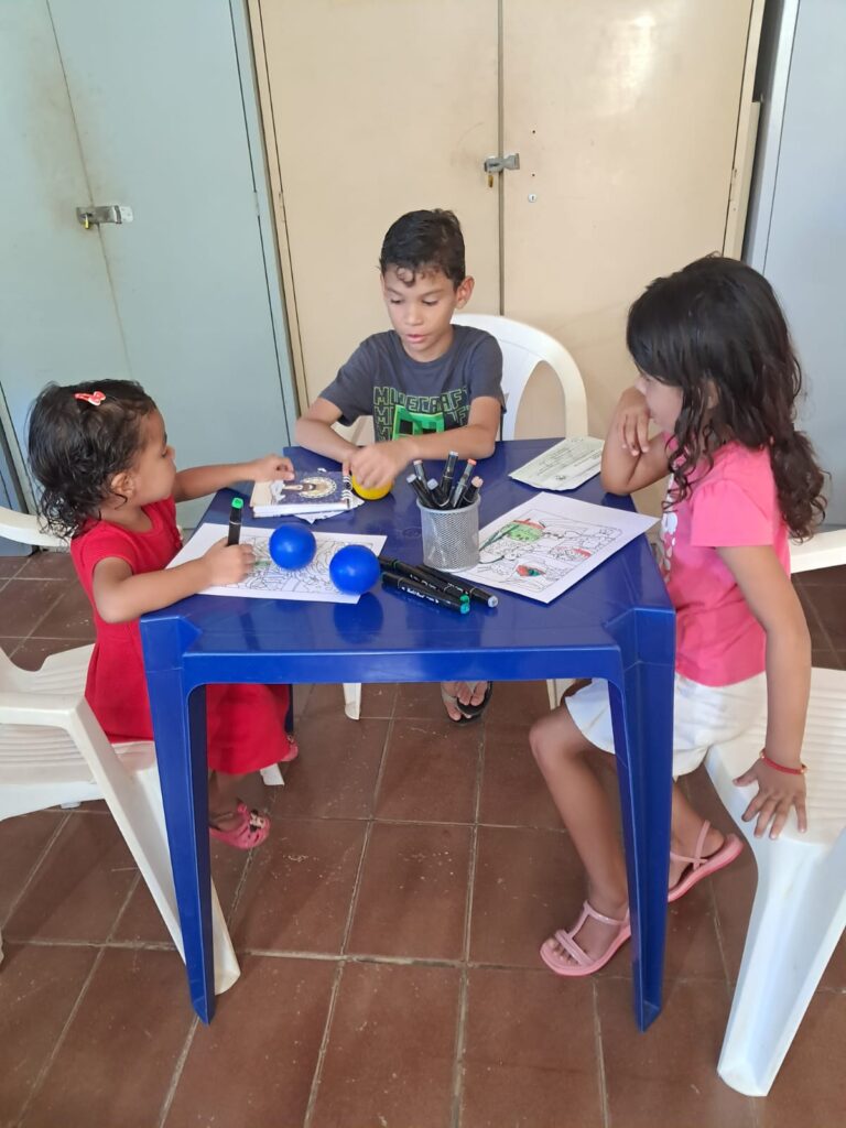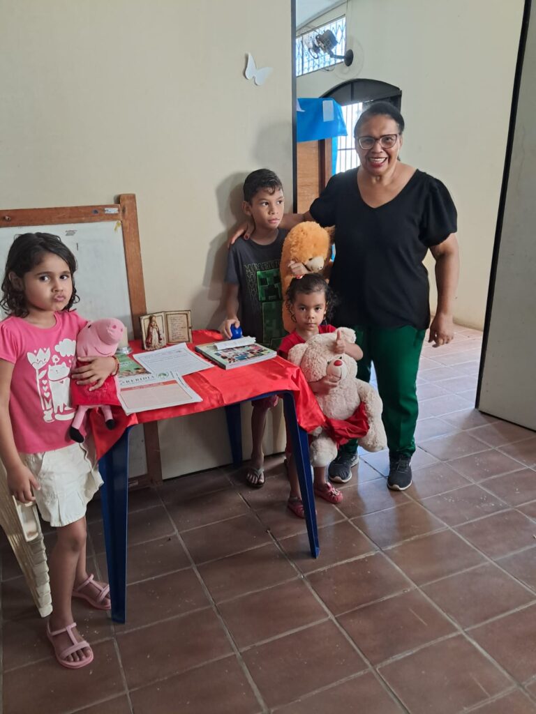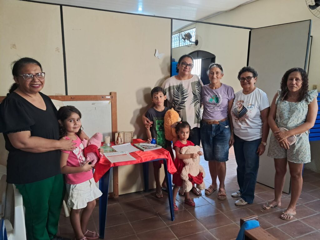 Participaram do encontro três crianças, com idades entre 3 e 5 anos, acompanhadas de suas mães. A programação teve início com uma acolhida fraterna, seguida de um momento de oração, confiando a Deus a vida de cada criança e família presente.