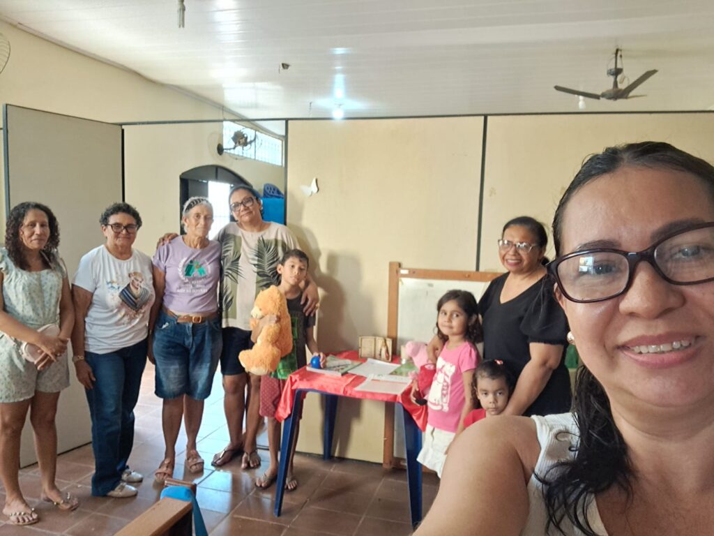 Na sequência, foi promovida uma palestra formativa com as mães, abordando a prevenção de doenças de pele e assaduras em crianças, oferecendo orientações práticas para o cuidado com a saúde infantil. O encontro foi concluído com um lanche partilhado, fortalecendo os laços de convivência e fraternidade entre os participantes.